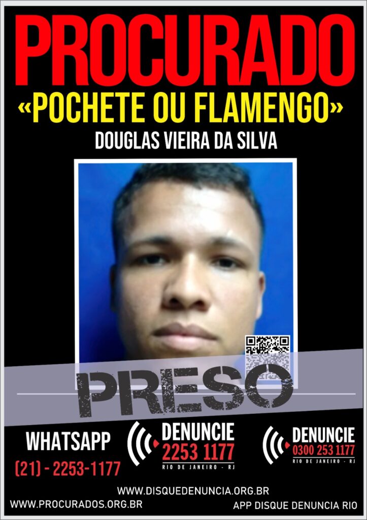 Douglas Vieira da SIlva, o Pochete ou Flamengo, foi preso hoje durante uma operação policial na comunidade do Santo Cristo, no Fonseca, na Zona Norte de Niterói, Ex-chefe do tráfico no Complexo da Alma, em São Gonçalo e ligado ao Terceiro Comando Puro, até o local ser tomado pelo Comando Vermelho no início da década, ele chama atenção pelo currículo criminal: responde a 13 processos por homicídio, um por ocultação de cadáver no TJ-RJ tendo 18 anotações na polícia por esse delito. Segundo os processos, uma das vítimas do bandido foi Mayara Alves da Silva, morta em 2018 a mando do traficante Drill, que estava preso em Bangu. A jovem foi colhida em casa e assassinada com diversos disparos de armas de fogo. Pochete foi acusado de homicidios em contexto de guerra entre o TCP e o CV na comunidade da Candoza, em São Gonçalo, em que as vítimas foram carbonizadas. Detalhes, eram seus ex-comparsas. Matheus Rodrigues da Silva foi mais uma vítima do bandido. Ele bebia em um bar no bairro do Jóquei quando Pochete o abordou dizendo que não queria mais lhe ver naquele local. Pouco depois, o criminoso retornou e efetuou disparos que atingiram o rosto do rapaz, que teve morte instantânea. Douglas também é apontado como envolvido na morte dos soldados do Exército Brasileiro Daniel Ferreira de Azevedo, de 19 anos, e Victor Hugo Xavier, 18, em julho de 2020, sendo um lotado na Fortaleza de Santa Cruz da Barra e, outro, do 21º Grupo de Artilharia em Campanha. No dia do crime, os militares assistiram uma partida de futebol em uma casa de festas no Mutondo, em São Gonçalo. Depois do jogo, foram para a um bar no Raul Veiga, onde conheceram duas meninas. Após o encontro, eles se ofereceram para levar as jovens em casa, e no caminho de volta acabaram se envolvendo em uma discussão causada por um acidente de trânsito, com o veículo onde estava o traficante André Luís dos Santos Affonso, conhecido como “Pai da Alma” (preso) a principal liderança da venda de drogas do Terceiro Comando Puro (TCP) em SG. Após serem identificados como militares, os jovens foram executados a tiros. Pochete é cadastrado no sistema carcerário com sendo de “Alta Periculosidade”, Na operação de hoje, PMs do 12º Batalhão tinham a informação que indivíduos ligados ao tráfico de drogas da facção TCP estariam realizando o corte de cabos de internet nas localidades da Palmeira, Pimba e áreas adjacentes, com o intuito de compelir moradores a cancelarem seus contratos regulares e aderirem a um provedor clandestino por eles imposto. Durante as diligências realizadas pelas equipes, por intermédio do canal Maré Zero, foi recebida nova denúncia informando que indivíduos armados estariam mantendo uma família em cárcere privado em uma residência da localidade. Diante da gravidade da situação, policiais do Grupamento de Ações Táticas (GAT) e do Serviço Reservado, procederam de imediato ao endereço informado, onde constatou que os acusados se encontravam no quintal da residência, enquanto os moradores permaneciam no interior do imóvel, encontrando-se todos bem. Após cerco tático, os policiais conseguiram prender os criminosos, de posse dos seguintes armamentos: 01 fuzil Ruger calibre 556,, com 04 munições intactas; 01 pistola Taurus, calibre 380, com 18 munições intactas e 01 pistola G-Cherokee, calibre 9mm, com 12 munições intactas.