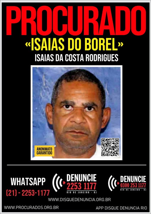 .Traficantes lendários do Comando Vermelho estão foragidos Um deles é “Isaias do Borel”. Considerado de Altíssima Periculosidade, está na condição de procurado pela Justiça do Rio. Líder do tráfico de drogas do Morro do Borel, na Tijuca, ele se encontra em Prisão Albergue Domiciliar (PAD), infringindo a regras do benefício, contra ele consta um Mandado de Prisão, expedido pela 3ª Câmara Criminal, Nº do Mandado de Prisão: 5010115-76.2022.8.19.0500.01.0001-01, Data de expedição: 15/05/2023, Espécie de prisão: Por condenação transitada em julgado, Regime de cumprimento: Fechado. O outro José Benemário de Araújo, vulgo “Rato ou Major ou Tonho”, de 51 anos, Um dos lideres da Comunidade do Mandela, em Bonsucesso, Zona Norte do Rio, que se encontra em Prisão Albergue Domiciliar (PAD), desde fevereiro de 2022, infringido a regras do benefício, contra ele consta um Mandado de Prisão, expedido pela Vara de Execuções Penais (VEP), pelos crimes de Tráfico de Drogas, Extorsão Mediante Sequestro e Homicídio, Nº do Mandado de Prisão: 0071789-14.1987.8.19.0001.01.0004-24, Espécie de prisão: Por condenação transitada em julgado, Data de expedição: 10/07/2024, com Regressão na forma de execução da pena privativa de liberdade, com a transferência para regime mais rigoroso – Fechado, pelo prazo de 70 ano(s), 4 mês(es) e 0 dia(s) – art. 118 da Lei de Execução Penal.
