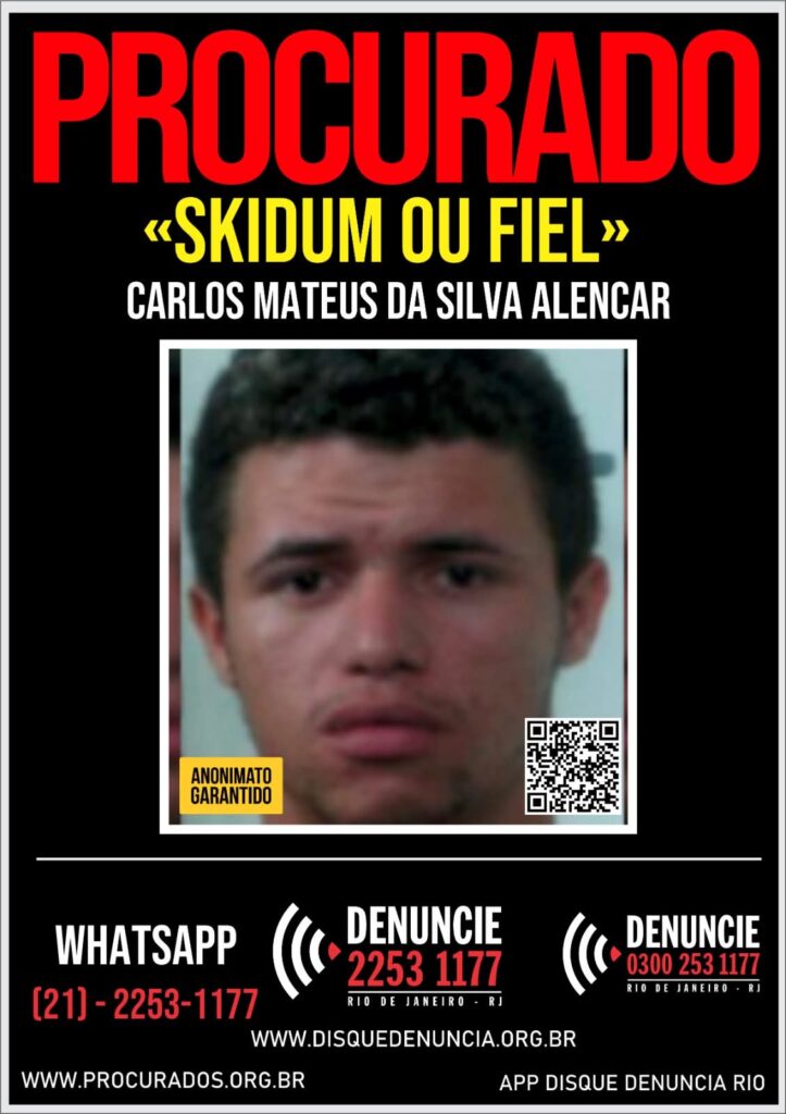 Os setores de Inteligência da Polícia Militar e da Polícia Civil, do Estado do Ceará e as Forças de Segurança do Rio, buscam informações que levem à localização e prisão, do criminoso ligado a Organização Criminosa Comando Vermelho (CV), Carlos Mateus da Silva Alencar, conhecido como ‘Skidum’, de 31 anos. Conhecido também pelos apelidos de “Fiel ou Maestro”, ele se escondendo no Complexo da Penha ou na Maré, dois dos principais redutos do CV no Rio, e tem como principal aliado o narcotraficante Edgar Alves de Andrade, o Doca da Penha ou Urso”, de 55 anos, um dos criminosos mais procurados pelas autoridades do Rio de Janeiro, e considerado pelo sistema carcerário de “Altíssima Periculosidade”, com 32 mandados de prisão, expedido pela Justiça Fluminense. “Skidum”, consta na lista dos mais procurados da Secretaria da Segurança Pública e Defesa Social do Ceará (SSPDS), onde é descrito como “chefe de organização criminosa com atuação no bairro Pirambu, em Fortaleza/CE, com antecedentes criminais por homicídio, tráfico de drogas, porte ilegal de arma de fogo” e “indivíduo de alta periculosidade”. Ele estaria envolvido, em pelo menos, 10 homicídios somente nos últimos anos. A maior parte das execuções ocorreu no contexto do conflito entre as facções CV e Massa Carcerária, surgida após um racha na organização criminosa de origem carioca. Uma das exceções é o assassinato do blogueiro Givanildo Oliveira da Silva, o Gigi do Pirambu News, crime ocorrido em 7 de fevereiro de 2022. A trajetória criminosa do traficante é mais antiga que as denúncias recentes, vindo, pelo menos, desde 2015. Naquele ano, “Skidum”, foi denunciado junto com outro comparsa, pelo assassinato do pescador Antônio Farias Barbosa no Pirambu. Conforme consta da referida denúncia, o fato teria sido motivado por vingança, posto que os acusados pretendiam revidar a morte do irmão do denunciado Victor de Sousa, além do fato de acreditarem que a vítima seria informante da polícia”, diz a sentença que pronunciou os dois. Ele ainda foi denunciado pela morte do chefe do tráfico da comunidade de Areia Grossa e de uma outra vítima em 2021. Mesmo estando escondido no Complexo da Penha, ele continua a comandar as ações criminosas no bairro Pirambu. Contra ele constam seis mandados de prisão, pelos crimes de Tráfico de Drogas, Homicídio, Furto, Ameaça, entre outros e por interromper o monitoramento por tornozeleira eletrônica que lhe havia sido imposto por estar cumprindo pena em regime aberto por furto Então, quem tiver informações sobre sobre a localização do traficante “Skidum” e Doca da Penha”, favor denunciar pelos seguintes canais de atendimento do Disque Denúncia do Rio: Central de atendimento/Call Center: (021) – 2253 1177 ou 0300-253-1177WhatsApp Anonimizado: (021) – 2253-1177 (técnica de processamento de dados que remove ou modifica informações que possam identificar uma pessoa)Aplicativo: Disque Denúncia RJAnonimato Garantido