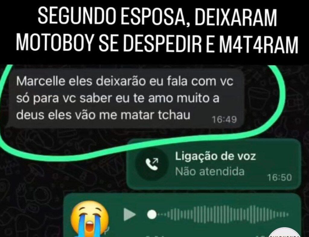 Segundo um print de uma conversa que foi divulgada, antes de o rapaz ser supostamente morto, os traficantes teriam lhe obrigardo a se despedir de sua mulher.