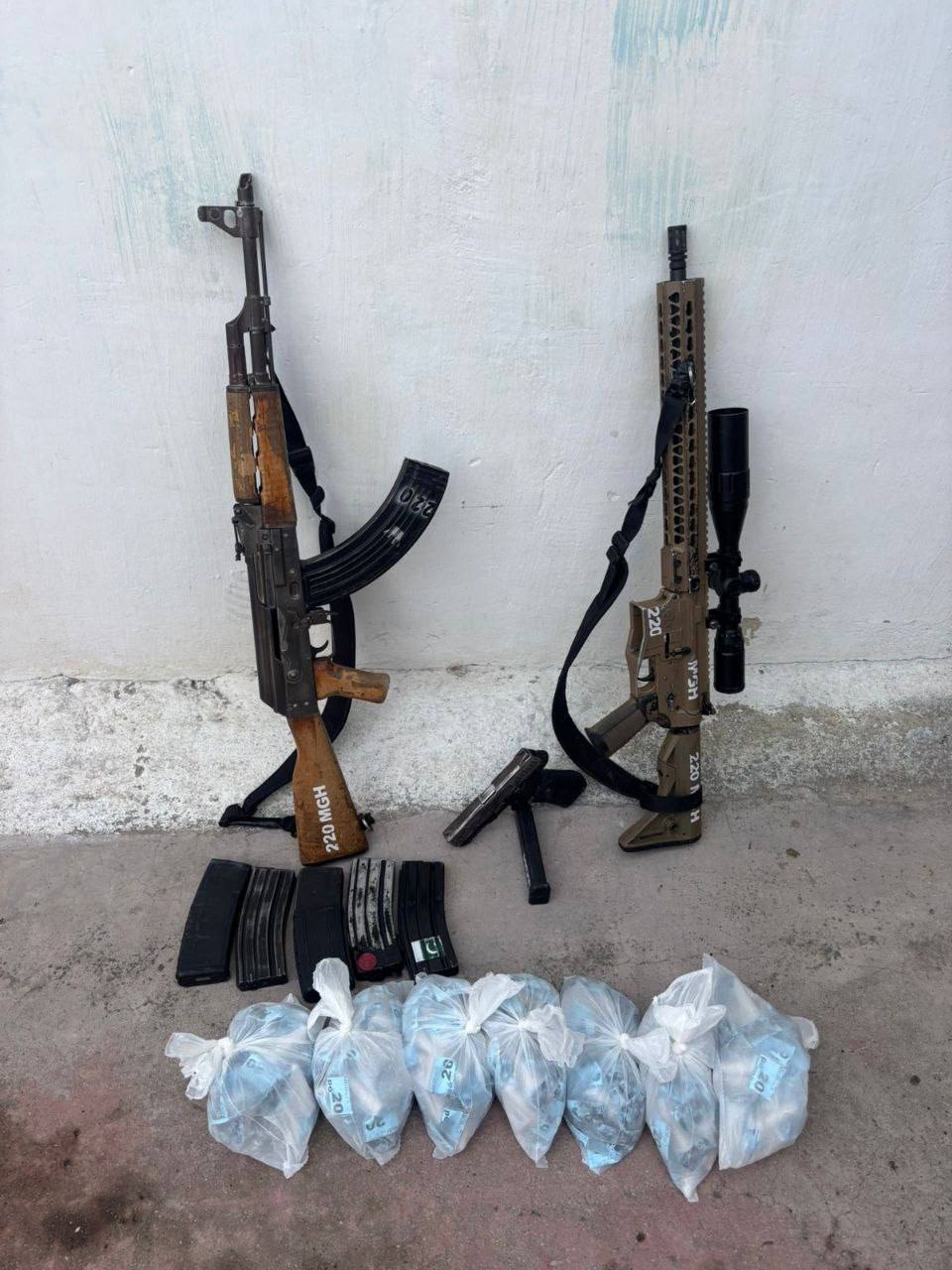 Em destaque nas armas as frases “220” e “MGH” nos fuzis, em alusão ao traficante Choque do Manguinhos, que retomou o poder da comunidade em janeiro de 2024