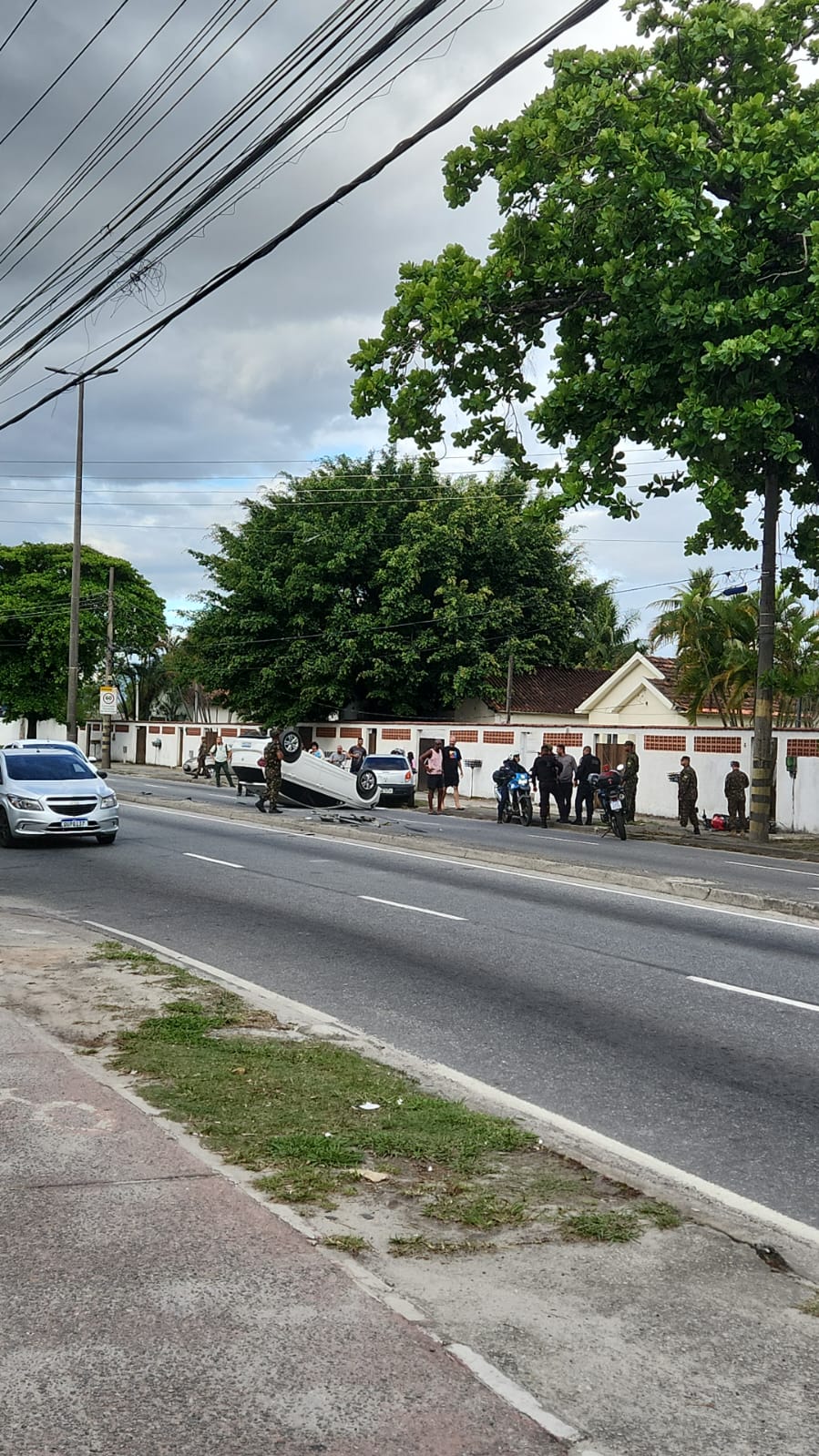 A Assessoria de Imprensa da Secretaria de Estado de Polícia Militar informa que, nesta terça-feira (21/10), policiais militares do 27° BPM (Santa Cruz) foram acionados para uma ocorrência na Avenida Brasil, altura da Avenida João XXIII, em Santa Cruz, No local, as equipes se depararam com um acidente envolvendo dois veículos, estando um deles capotado, e uma motocicleta.