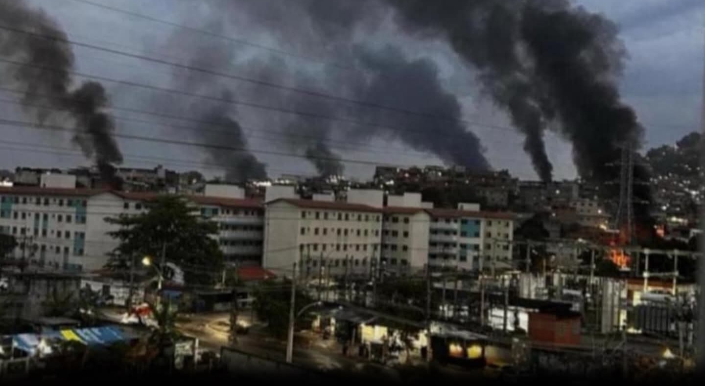 Muitas barricadas com fogo foram montadas pelos criminosos.