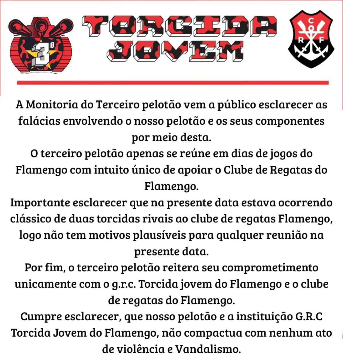 A Jovem Fla se pronunciou nas redes sociais negando participação no crime (Leia acima)